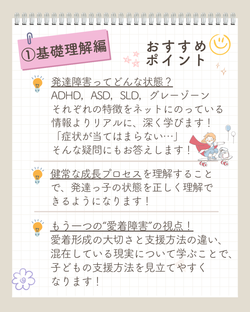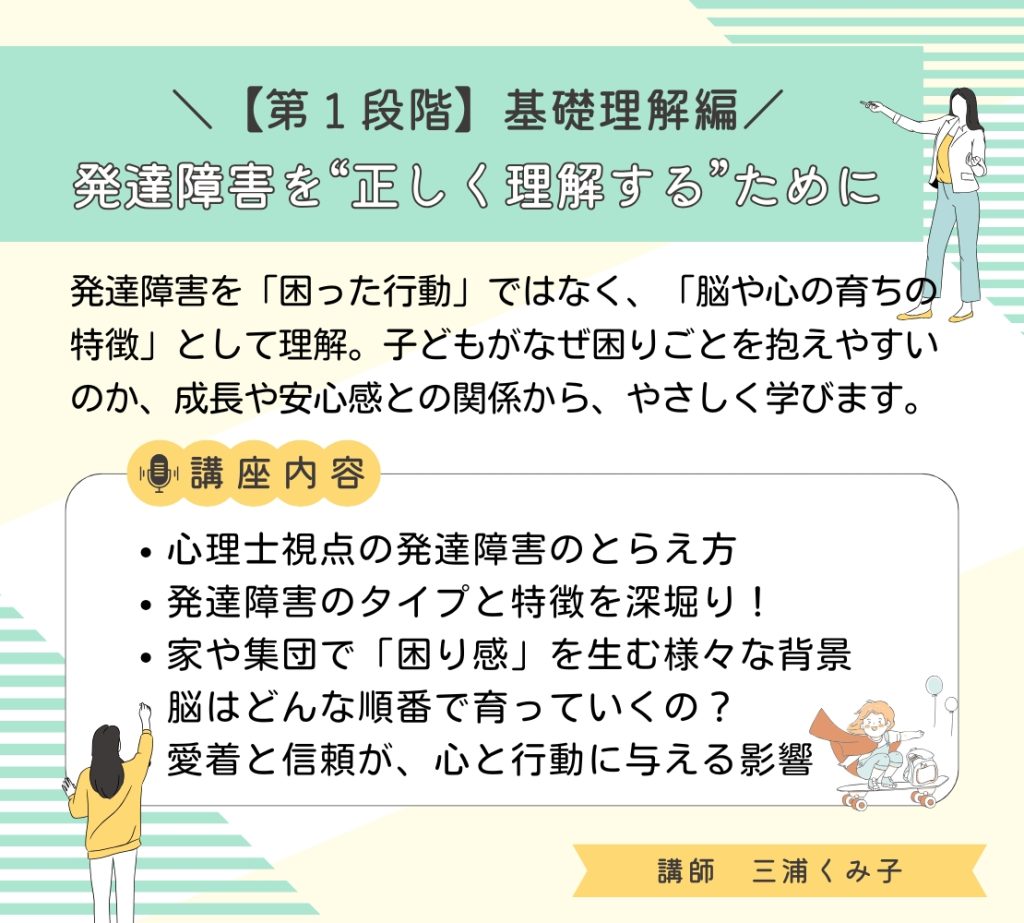 この講座では、心理学と発達支援の両面から、発達障害の本質を体系的に学びます。